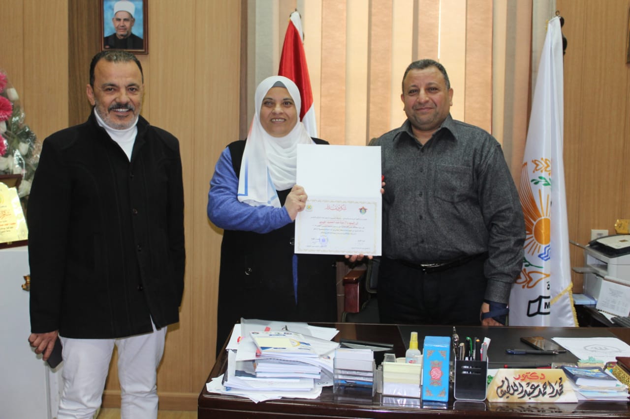 ا.د.محمد أحمد عبد اللطيف عميد الكلية يكرم السيدة / عزه عبد الحميد رئيس قسم الاستحقاقات بالكلية والفائزة بلقب الأم المثالية بجامعة المنصورة للعام ٢٠٢٣